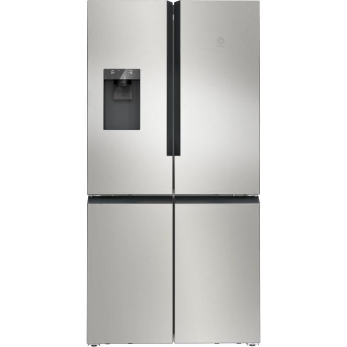 Modelo multi‑puerta con dos puertas laterales, No Frost total, control táctil en puerta, funciones super‑congelación/refrigeración, cajón BigBox, iluminación LED, dispensador de cubitos de hielo y agua, conectividad Wi‑Fi Home Connect, sistema MultiAirFlow para circulacion uniforme del aire